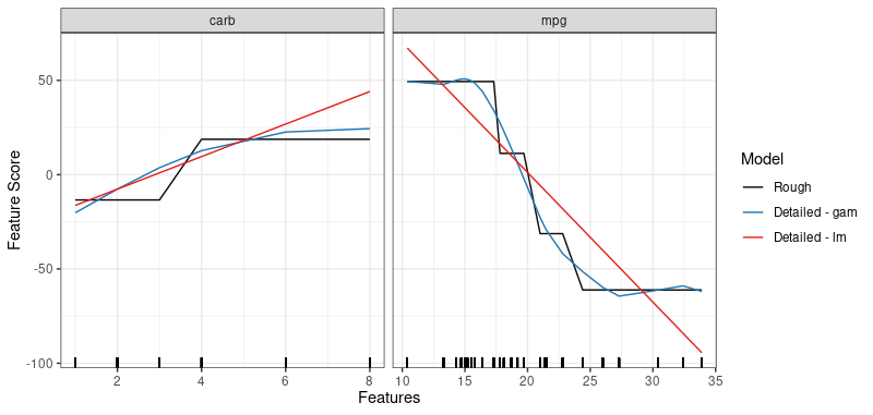 - Obtain a final polished model by removing the unnecessary features from the rough model and potentially smoothing the additive components for the remaining features. Any univariate smoother can be used, including those with facilities to ensure constraints such as monotonicity.