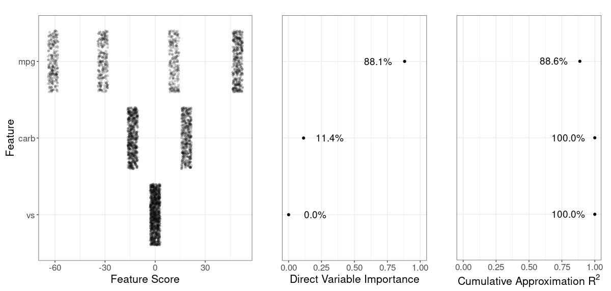 - Use a direct variable importance measure to identify features that have negligible impact on the rough model. Effectively we identify rough model additive components that are nearly flat.