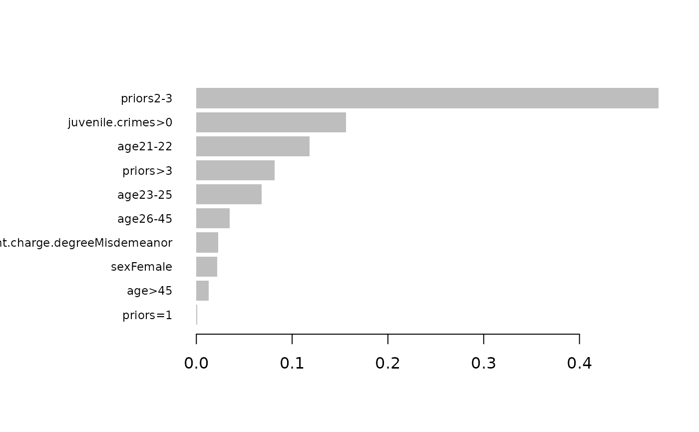 test <- read.csv("https://raw.githubusercontent.com/corels/corels/master/data/compas_test.csv")In this dataset, recidivate.within.two.years is the